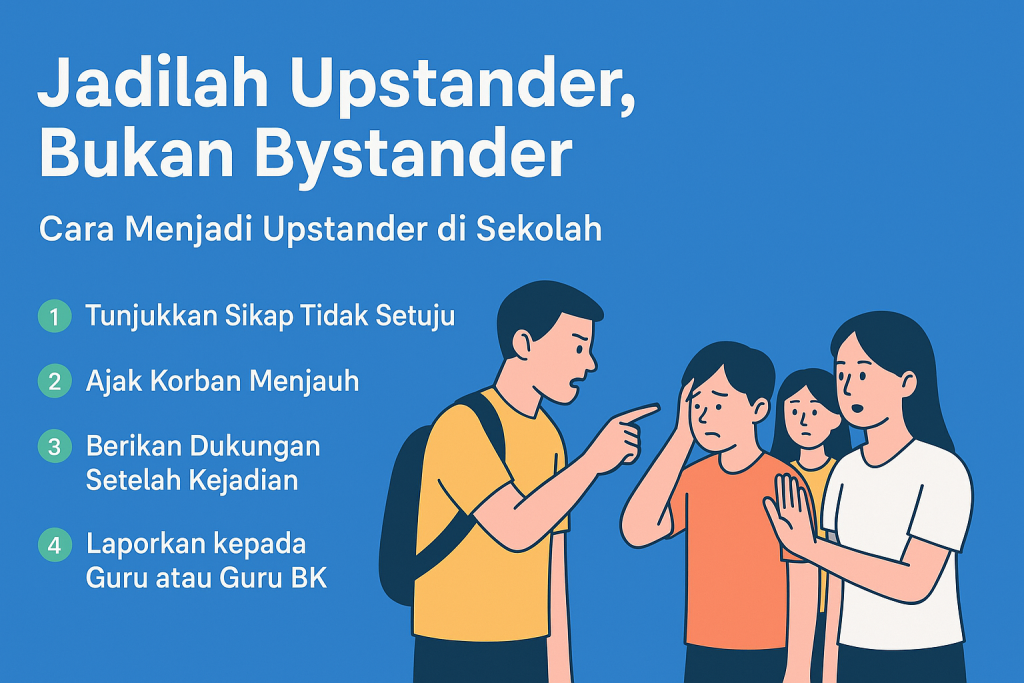 Bullying di lingkungan sekolah masih menjadi masalah serius yang dapat berdampak buruk terhadap kesehatan mental dan perkembangan sosial siswa. Sayangnya, banyak kejadian bullying yang dibiarkan begitu saja oleh siswa lain karena merasa takut, bingung, atau tidak tahu harus berbuat apa. Dalam situasi seperti ini, penting bagi kita untuk memahami perbedaan antara menjadi seorang bystander (penonton pasif) dan upstander (pelindung aktif).