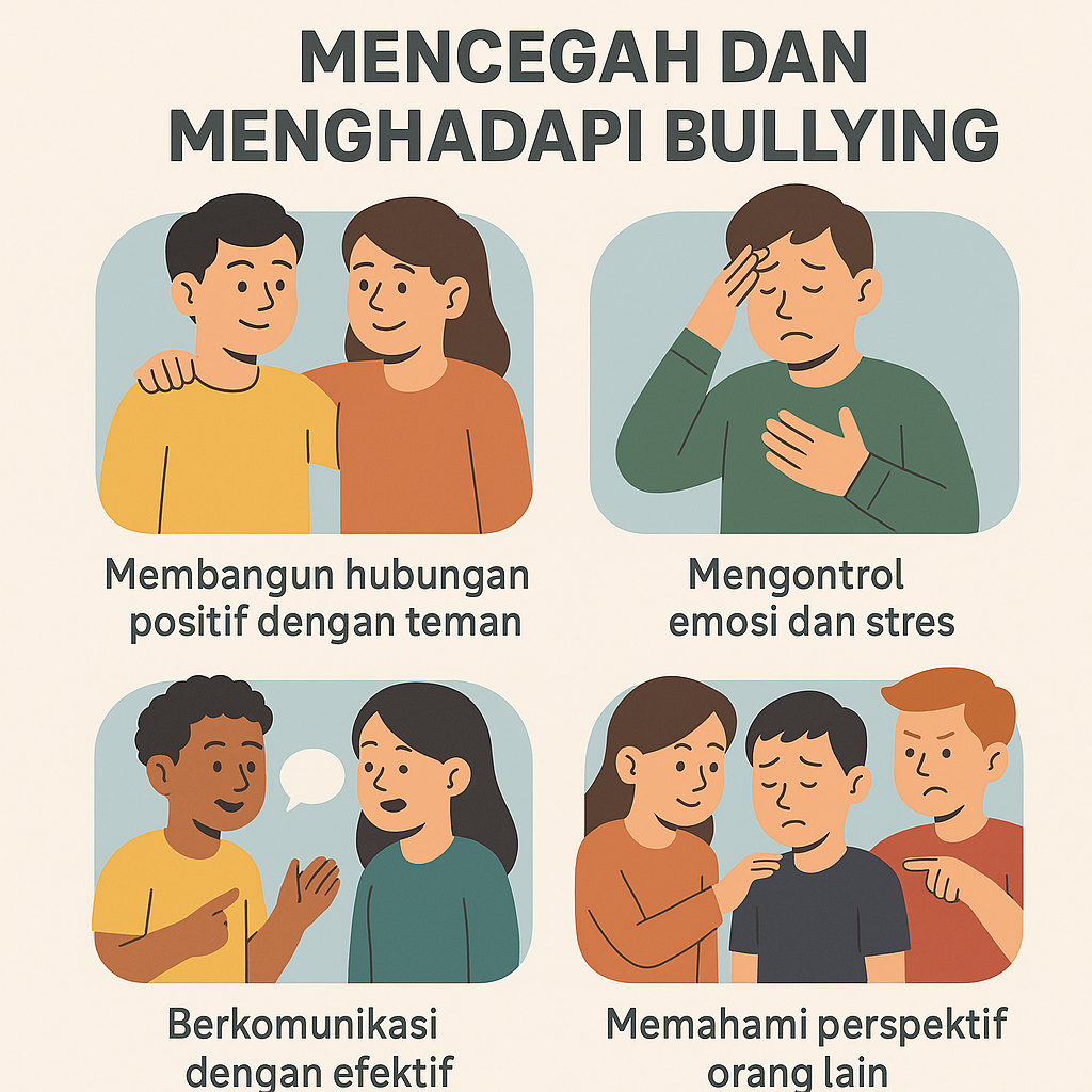 Mampu Menjalin Hubungan Positif Relasi sosial yang sehat menjadi pelindung alami dari perilaku bullying. Seseorang yang memiliki pertemanan positif akan lebih aman dan didukung saat mengalami konflik.